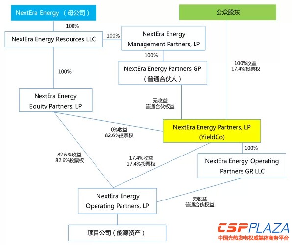 在這一架構下,母公司通過作為YieldCo普通合伙人的NextEra Energy Partners GP和擁有YieldCo82.6%投票權的NextEra Energy Equity Partners實現了對YieldCo的控制,同時通過在NextEra Energy Equity Partners中的合伙份額獲得資產82.6%收益。