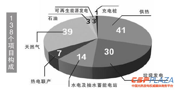 記者梳理發現,在138個能源項目中,垃圾發電項目30個,常規水電和抽水蓄能電站項目14個,油氣管網項目42個,供熱及熱電聯產項目48個,可再生能源發電項目3個,充電樁項目1個。