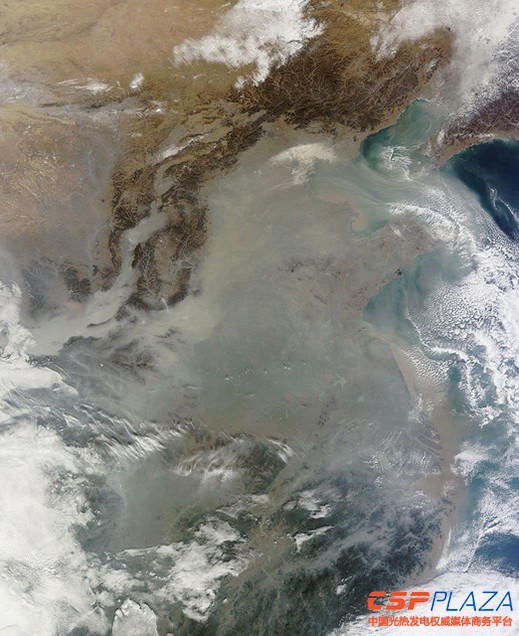 2013 年 12 月衛星拍攝的中國北部地區空氣污染圖片
