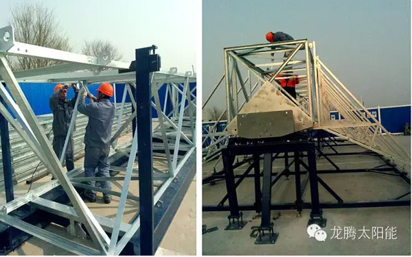 2014年8月,常州龍騰太陽能熱電設備有限公司成功中標中廣核863槽式集熱試驗平臺建設項目集熱器支架和集熱管采購,在中廣核承建的600m槽式回路中,常州龍騰將負責相關標段的集熱管供應與集熱器集成安裝調試工作。目前常州龍騰負責的集熱器組裝安裝工作已接近尾聲,即將進行集熱管的安裝施工。