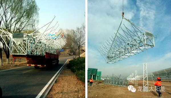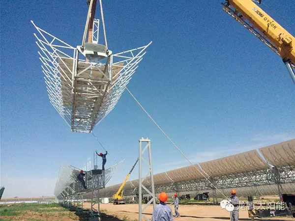 在項目實施過程中,常州龍騰863項目組克服聚光器組裝場地限制、超限運輸、大風、沙塵暴等種種困難,按期保質完成聚光器組裝安裝工作,展現出嚴謹專業的技術服務及工程素養,通過業主對聚光器的安裝精度檢測,受到業主一致好評。