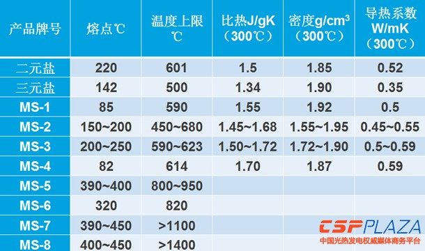 圖:百吉瑞開發的不同型號的低熔點熔鹽及參數