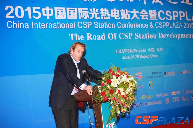 CSPPLAZA光熱發電網報道:中國國際光熱電站大會暨CSPPLAZA年會2015于6月25~26日在京盛大召開,德國Erfis公司總裁Alexander Von Sperber出席本屆大會,并就“CSP應用的新維度:新型模塊化槽式集熱器有效降低成本并提升發電量”這一主題發表演講。