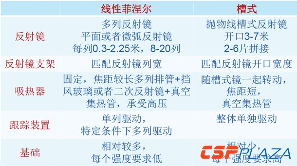 圖:菲涅爾光熱技術與槽式光熱技術對比