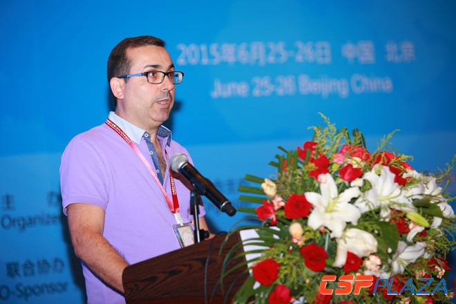 CSPPLAZA光熱發電網報道:西班牙Geonica公司研發部經理Simon Bautista出席6月25~26日在京召開的中國國際光熱電站大會暨CSPPLAZA年會2015,并就光熱項目開發的DNI資源評估作主題發言。