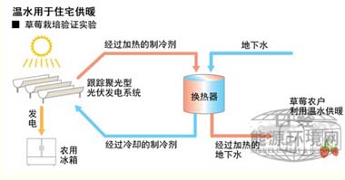 作為熱量利用方法,主要有直接使用熱水、制造蒸汽旋轉渦輪機進行發電、使用熱電轉換元件轉變為電力、用于熱泵熱水器等。在宮城縣草莓農戶進行的實證試驗就是將電力用于農用冰箱,熱量用于住宅內供暖。