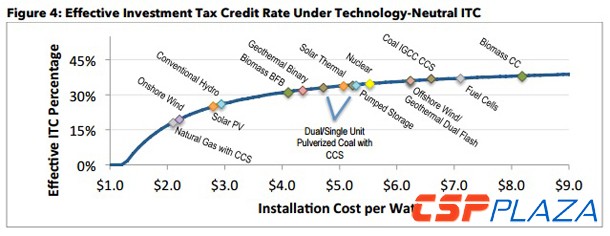按照Ronen的思路,隨著光熱發電項目安裝費用逐漸降低,其應該享受的ITC補貼額度會跟著下降。該提案可以說是技術中立型的,因為它并不參考不同技術路線目前建設成本所存在的差異。相反,它會主要參考此前美國稅務局存檔的不同技術的建設成本及下降潛力來決定未來該技術應該享受的ITC補貼額度。