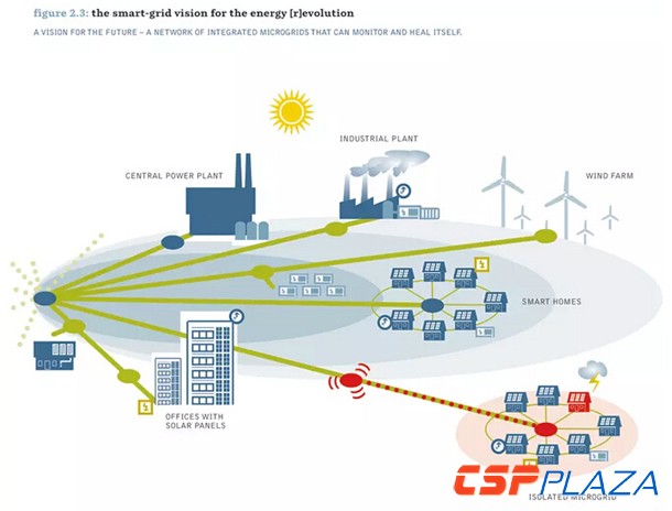 電網——連接電站同消費者的系統——可以處理大量的可再生能源。在目前使用的電網模式上增加風能和太陽能不是解決之道。我們所需要的是整個能源系統的漸進轉換,以適應現代能源的生產和消費。