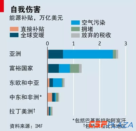 當然,對于化石燃料的隱性成本,科學界尚未達成共識,而對于如何在未來幾代人(想必更富裕)和當前一代人之間分攤對抗氣候變化的開支,也存在分歧。不過,即便只是看燃料補貼那些最容易被量化的缺點,情況也已足夠糟糕。