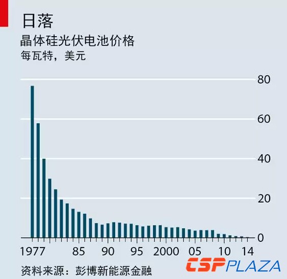 如果要將造成嚴重污染的化石燃料踢出局,可再生能源的發展卻面臨著艱巨的挑戰。即使只是要將其占比提高幾個百分點,都必須大幅削減成本。太陽能是其中最有潛力的選擇,其成本還會不斷下跌(見下圖)。然而,太陽能的發展可能自我設限。