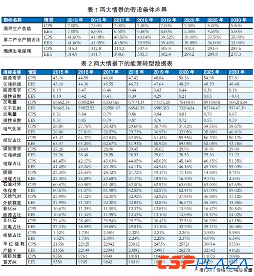 在CPS情景下,發電總量及發電量彈性系數偏高,而電力在終端能源消費中的占比(或電氣化率)較低。然而,在EES情景下,發電總量及發電量彈性系數降低一些,但是,電氣化率反則提升,因為二次能源轉換率提升,終端生活和工業部門能源消費中的電力利用領域和范圍更加廣泛,從而終端能源消費更加清潔、環保、減排,更有利于建設低碳、環保和可持續的發展環境,實現“美麗中國”的目標。