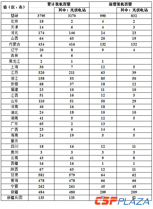 全國各省(區、市)中,累計光伏發電裝機容量超過100萬千瓦的達9個,分別為新疆(含兵團)617萬千瓦、甘肅581萬千瓦、青海478萬千瓦、內蒙古434萬千瓦、江蘇320萬千瓦、寧夏262萬千瓦、河北174萬千瓦、浙江158萬千瓦、山東110萬千瓦。1-9月新增裝機容量較大的地區為:新疆(含兵團)261萬千瓦、內蒙古132萬千瓦、浙江85萬千瓦、青海66萬千瓦、甘肅64萬千瓦、江蘇63萬千瓦、山東50萬千瓦、寧夏45萬千瓦。全國各省(區、市)2015年1-9月光伏發電建設信息簡況詳見附表。