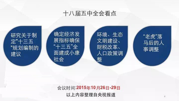 導讀:10月26日,備受矚目的中國共產黨第十八屆五中全會在北京拉開帷幕,會議主要議題便是審議“國民經濟和社會發展第十三個五年規劃”。此次會議時逢中國經濟處于結構調整、體制改革的陣痛期,如何制定經濟剛發展目標,如何深化電力、油氣體制改革成為了人民關注的焦點。想要更好地解讀國家規劃意圖,判斷市場走向,發現潛在投資機會?讀完此文相信你會有更獨到的見解。