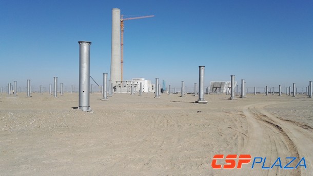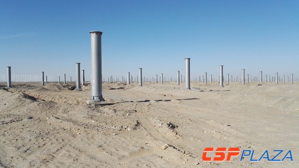 首航節能敦煌光熱發電項目共計裝機110MW,分兩期建設,一期10MW示范項目目前正在建設中,據悉,一期項目現已完成常規島汽輪發電機組的安裝,所有定日鏡立柱也已安裝完畢,但集熱器和光場定日鏡尚未完成安裝。