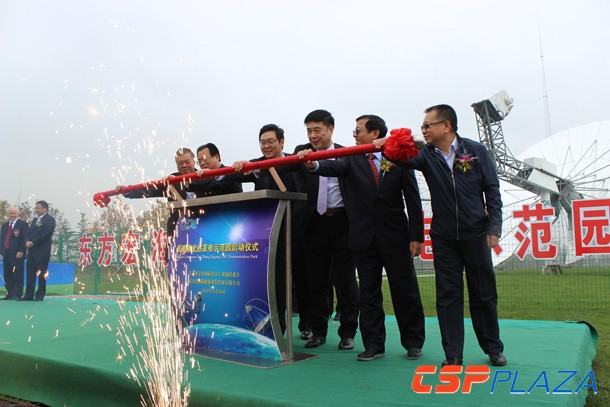 圖:張家港市市長朱立凡、副市長趙建明以及其他嘉賓啟動“東方宏海張家港光熱發電示范園”