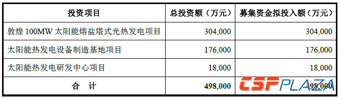 首航本次非公開發行擬募集資金總額不超過49.8億元(含發行費用),擬投資于敦煌100MW太陽能熔鹽塔式光熱發電項目、太陽能熱發電設備制造基地項目和太陽能熱發電研發中心項目。本次擬投資項目的具體情況如下:
