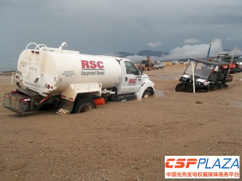 CSPPLAZA光熱發電網訊:據美國方面的消息,在今年7月底,正在美國加州Riverside地區建設的250MW的NextEra Energy公司的槽式太陽能光熱發電項目遭受了一場暴雨和颶風的襲擊。