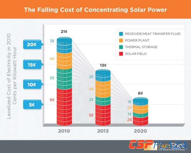 圖:美國SunShot計劃制定的光熱發電成本下降目標