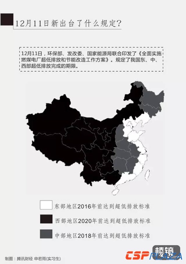 《方案》提出,東部、中部、西部地區分別在2017年、2018年、2020年實現超低排放。即在基準氧含量6%條件下,燃煤電廠力爭實現煙塵、二氧化硫、氮氧化物排放濃度分別不高于10、35、50 毫克/立方米。