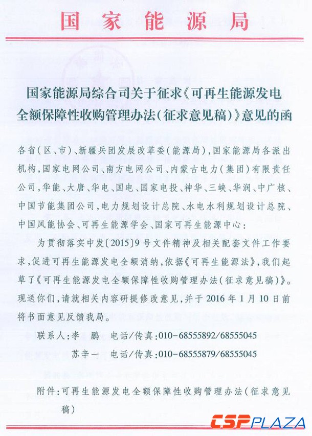近日,為進一步落實《中共中央國務院關于進一步深化電力體制改革的若干意見》(中發[2015]9號文)及相關配套文件的有關要求,國家能源局起草了《可再生能源發電全額保障性收購管理辦法(征求意見稿)》(下稱《辦法》),并向全社會廣泛征求意見。