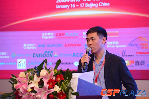 CSPPLAZA光熱發電網報道:由中國光熱發電行業唯一的專業媒體商務平臺CSPPLAZA主辦、首航光熱聯合主辦、中控太陽能、江蘇太陽寶和百吉瑞新能源聯合協辦,中海陽贊助晚宴的以“示范熱潮下的通力協作”為主題的中國光熱示范項目開發全產業鏈合作峰會暨CSPPLAZA2016新年匯于1月16日~17日在京盛大召開!SolarReserve公司中國區代表傅可夫出席本屆大會并發表演講。