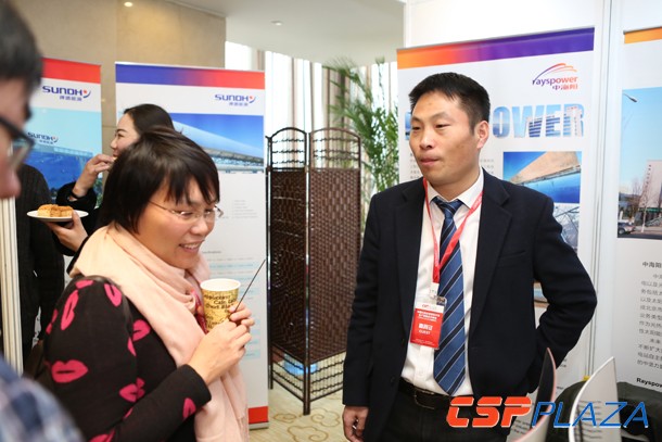 本次活動共有十二家展商攜領先產品和服務參展,包括:集熱管和反射鏡領先制造商瑞環(內蒙古)太陽能-西班牙Rioglass公司、領先的光熱電站系統集成商、光熱鏡場主設備制造商中海陽能源集團股份有限公司、領先的光場質量檢測機構德國CSPServices公司、領先的太陽能輻照監測服務商北京瑞科同創能源科技有限公司、領先的反射鏡超白玻璃原片生產商旭硝子特種玻璃(大連)有限公司、領先的導熱油供應商蘇州首諾導熱油有限公司、國產集熱管代表性廠商北京天瑞星光熱技術有限公司、創新型二次反射塔式技術公司江蘇鑫晨光熱技術有限公司、領先的回轉驅動減速機制造商江陰尚馳機械制造有限公司、領先的槽式集熱器系統廠商成都博昱新能源有限公司、領先的超聲波流量計供應商科隆測量儀器(上海)有限公司、領先的導熱油供應與技術服務商江蘇知本化學有限公司。