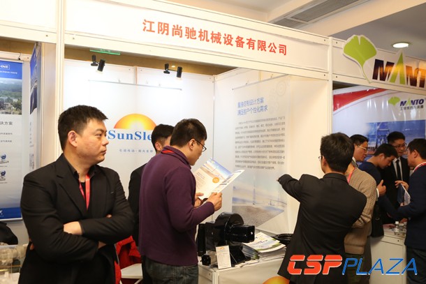 其中,Rioglass展出了其領先的集熱管產品和鋼化反射鏡產品以及創新型超薄反射鏡產品,江陰尚馳展出了其回轉減速機,另外包括天瑞星、旭硝子、中海陽、科隆測量儀器、瑞科同創等公司也分別攜集熱管、超白玻璃、反射鏡、超聲波流量計、DNI監測設備等產品參展,吸引了與會代表的廣泛關注。下面刊出的一組圖片展示了各參展商的風采。