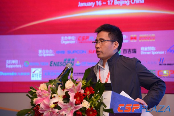 CSPPLAZA光熱發電網報道:由中國光熱發電行業唯一的專業媒體商務平臺CSPPLAZA主辦、首航光熱聯合主辦、中控太陽能、江蘇太陽寶和百吉瑞新能源聯合協辦,中海陽贊助晚宴的以“示范熱潮下的通力協作”為主題的中國光熱示范項目開發全產業鏈合作峰會暨CSPPLAZA2016新年匯于1月16日~17日在京盛大召開!中廣核太陽能開發有限公司總工程師邱河梅出席本屆大會并發表演講。