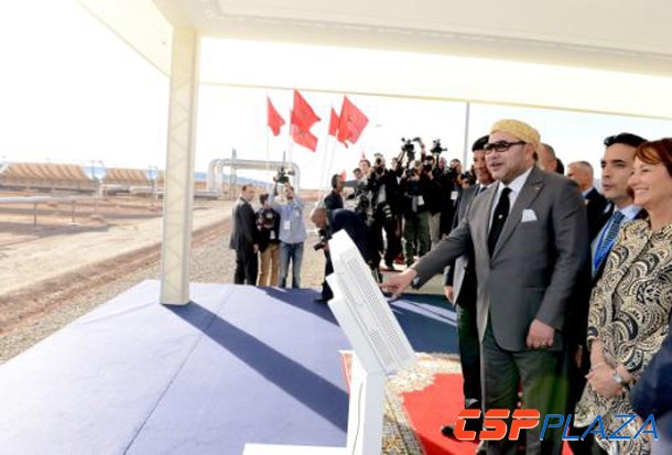 CSPPLAZA光熱發電網訊:2月4日,摩洛哥首個大型商業化光熱發電項目裝機160MW的NOOR1槽式電站正式投運,摩洛哥國王穆罕默德六世(MohammedVI)出席在電站所在地舉行的投運儀式。另外,出席該儀式的還有法國環境部長Segolene Royal、Sener總裁Jorge Sendagorta、ACCIONA副總裁Juan Ignacio Entrecanales、TSK總裁Sabino García等國內外政要和項目各參與方高管。