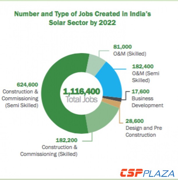 美國環保行動小組自然資源保護委員會(NRDC)與印度能源、環境和水委員會(CEEW)出版的《填補印度清潔能源市場的技能差距:太陽能焦點》發現,到2022年印度實現100GW的太陽能目標將需要: