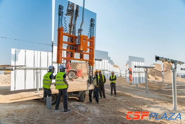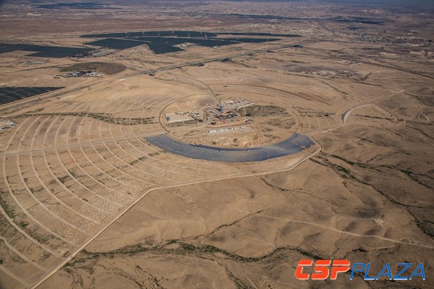 CSPPLAZA光熱發電網訊:Ashalim1塔式光熱電站建設于以色列內蓋夫沙漠,占地3.15平方公里左右,包含50000個配有太陽追蹤系統的定日鏡,由BrightSource和GE(原為Alstom,后Alstom被GE并購)等組成的聯合體Megalim太陽能公司負責建設。該項目的集熱塔是目前所知塔式光熱電站中最高的,裝機規模為121MW。