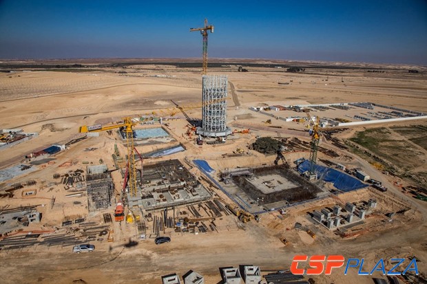 下面一組圖片展現了Ashalim1塔式光熱電站的建設場景。