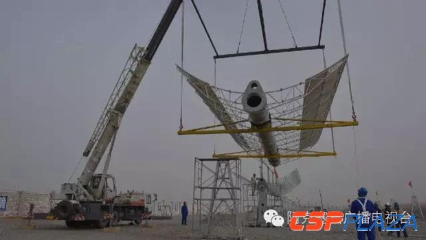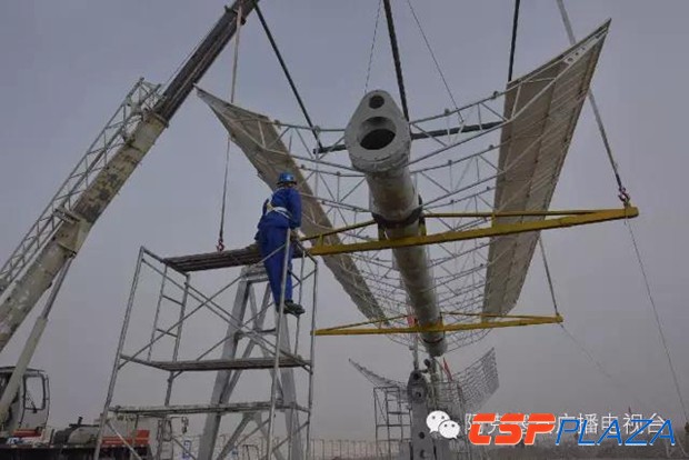 高溫熔鹽槽式光熱發電項目是比光伏技術門檻更高、環境污染更少的環保項目之一,槽式集熱系統是光熱發電系統中核心部件,也是最為重要、精密的部份之一,此次,甘肅光熱發電有限公司引進了國外全套槽式高溫熔鹽光熱發電技術試驗回路,在完成測試回路基礎澆筑、集熱區支架、核心光熱設備集熱器驅動塔、以及中間塔等設備安裝建設任務后,甘肅光熱發電有限公司積極組織技術人員于3月18上午對首臺安裝完畢的集熱發電系統進行了試安裝,該設備的試安裝為下一步正式吊裝安裝打下了良好基礎。