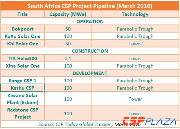圖:南非已投運、處于建設及開發過程中的光熱發電項目統計(來自CSP Today)