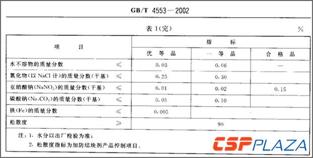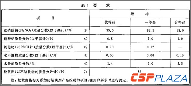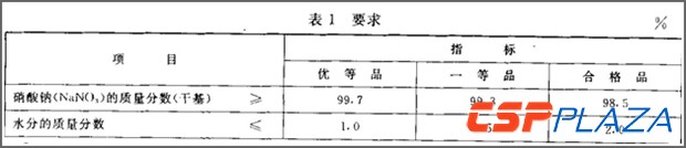 據了解,目前并無專門針對光熱發電行業用熔鹽產品的相關標準和規范,更多參考的是工業用硝酸鈉、硝酸鉀和亞硝酸鈉的相關標準,這些標準中對于氯化物的規定指標也在一定程度上被目前的光熱項目開發商所參考,具體產品標準如下: