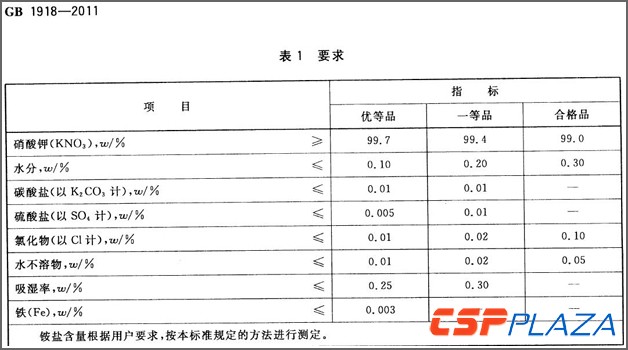 據新疆硝石鉀肥有限公司仲桂軍告訴CSPPLAZA記者,該公司中標中廣核德令哈50MW槽式光熱項目的硝酸鈉產品中氯化物(以NaCl計)的質量分數(以干基計)控制標準為≤0.25%,與工業硝酸鈉國標GB/T4553-2002規定的優等品所要求的氯化物標準相符。而根據中標中廣核德令哈50MW槽式光熱項目硝酸鉀產品的上海鹽湖文通化工有限公司的周智廣此前提供給CSPPLAZA記者的檢測報告顯示,該公司生產的硝酸鉀產品中氯化物(以Cl計)的質量分數的檢測結果為<0.01%,也與工業硝酸鉀國標GB1918-2011規定的優等品所要求的氯化物標準相符。
