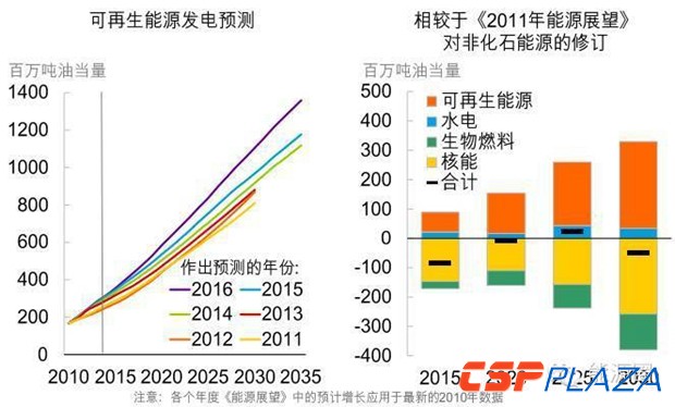 在過去的5年中,可再生能源發電每年都會被上調。與2011年的預期相比,本年度對2030年可再生能源的預計高出大約35%。本年度《能源展望》的上調是有史以來最大幅度的。