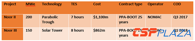 圖:NoorII和NoorIII項目的基本情況