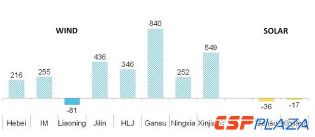圖:保障性利用小時數估算結果與2015年實際利用小時數差值