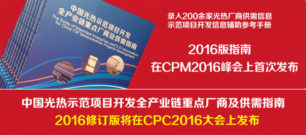 CSPPLAZA光熱發電網訊:為了增進行業同仁之間的彼此了解,滿足光熱發電行業的對接需求,在CPM2016活動期間,CSPPLAZA首次發布了服務于光熱示范項目開發的信息輔助參考手冊《中國光熱示范項目開發全產業鏈重點廠商及供需指南》(簡稱指南)。