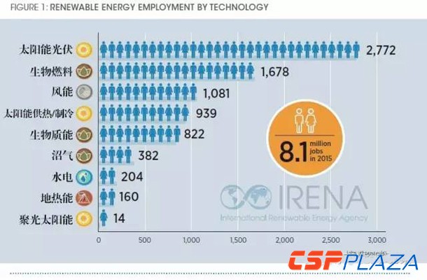 太陽能光伏給全球帶來了280萬的就業機會,比上次的統計提高了11%,可以說是可再生能源界最大的雇主。日本和美國的就業增加,中國的就業趨于穩定,歐盟的就業則減少了。