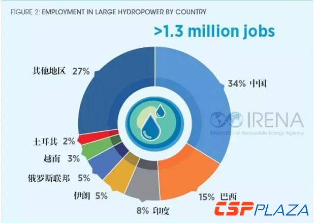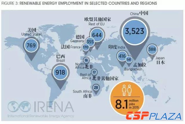 中國:2015年,中國開發的可再生能源總量所占全球比重超過三分之一,帶來了350萬就業機會,比2014年下降了2%。光伏和風電行業就業機會增加,抵消了太陽能取暖制冷和小型水電行業的就業機會減少。