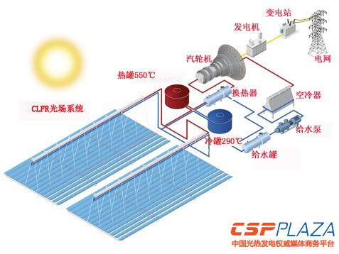 阿海琺菲涅爾光熱發電配儲熱系統示意圖