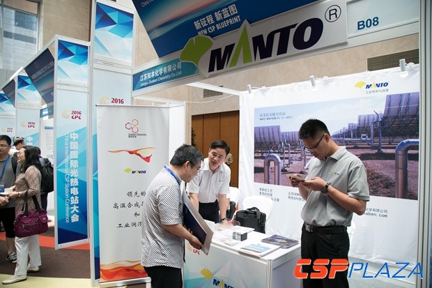 位于B8展位的江蘇知本化學有限公司也是一家做導熱油的企業,不同的是,知本化學在提供光熱電站全系列導熱油的同時還可提供工業潤滑產品。其中,導熱油產品涵蓋-100℃到400℃溫度范圍,全方位滿足工業傳熱需求,其中包括400℃槽式光熱系統導熱油;多種高性能工業潤滑產品涵蓋極低溫抗磨液壓油和潤滑脂、合成齒輪油、長壽命汽輪機油、壓縮機油和真空泵油。這些潤滑油品可用于光熱發電系統中的液壓/蝸桿跟蹤系統、汽輪機、空冷島等。知本化學的ManthermK2導熱油產品自2011年起為某美國導熱油品牌提供OEM服務,2013年起已用于多個Abengoa的槽式項目,國內目前已用于常州龍騰太陽能熱電設備有限公司位于內蒙古的1.5MW槽式示范項目中。