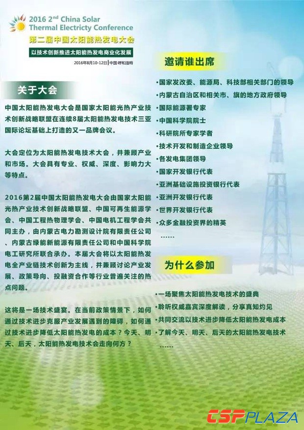 8月相約內蒙古·第二屆中國太陽能熱發電大會