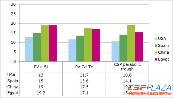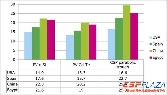 圖3:2010年四國PV-CSP的LCOE (單位:美分/kwh)