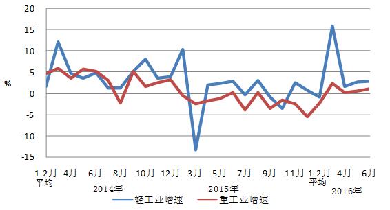 圖2:2014年以來分月輕、重工業用電量增速情況