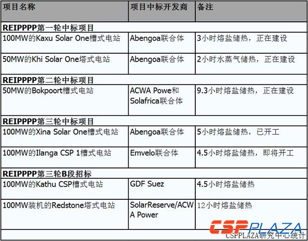 表:南非REIPPPP計劃前三輪中標的光熱發電項目