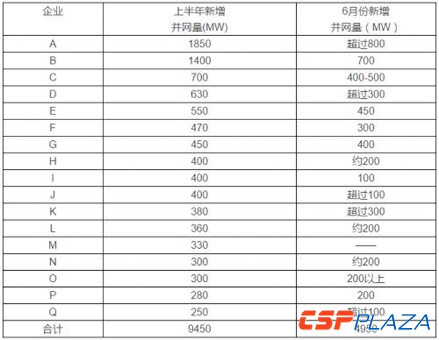 記者此前調研了二十多家電站投資商的上半年新增并網量,以下選取其中一部分數據: