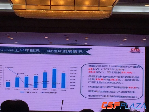 上半年電池片產量約25GW,2015上半年18.2GW,同比增長37.4%。